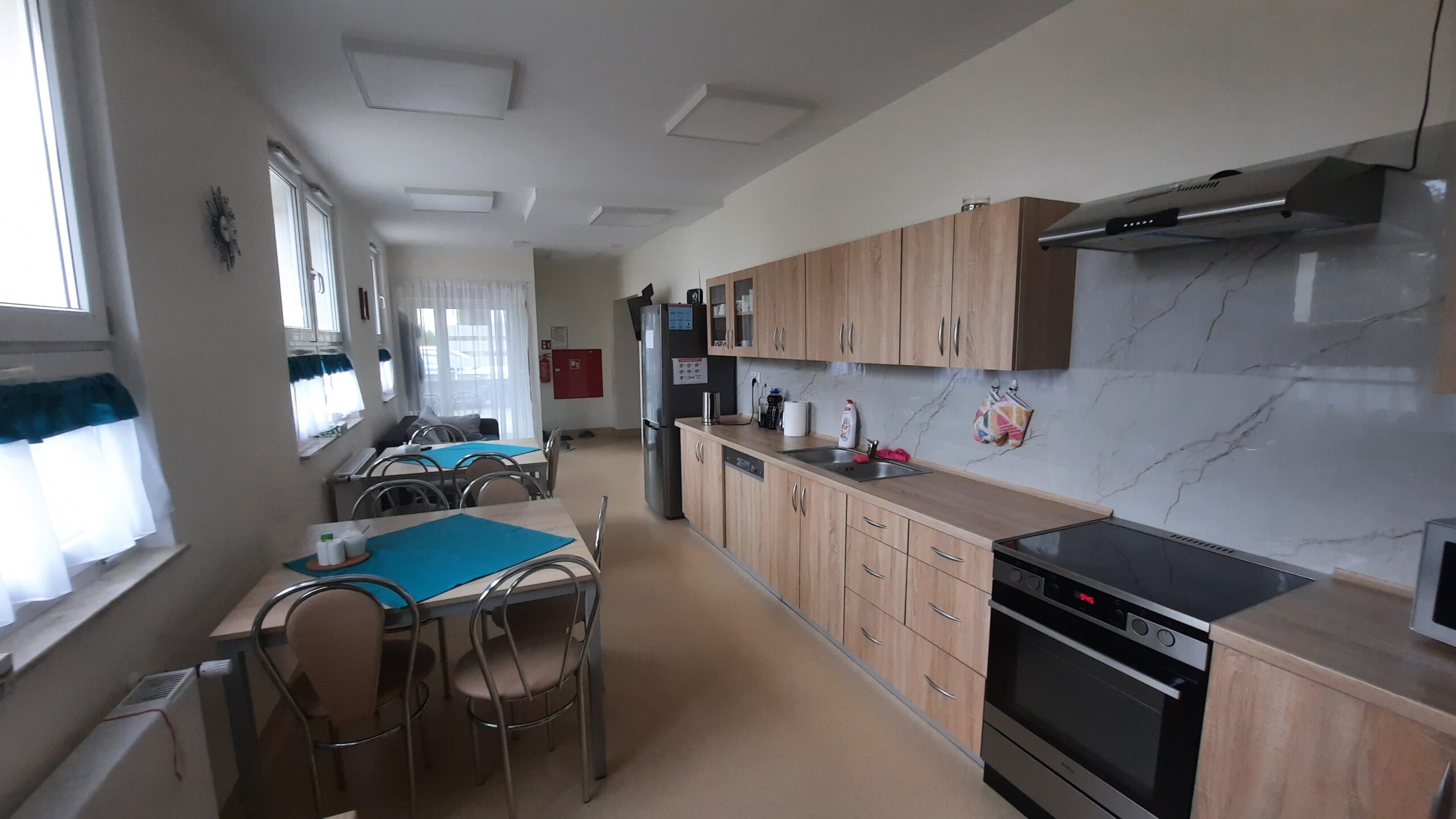 Pokoje w których zamieszkują mieszkańcy są 1 lub 2 osobowe. Standardowo umeblowane (łóżko, szafa na ubrania, stoliczek nocny, biurko, krzesło, odbiornik TV). Każdy pokój posiada własną łazienkę. Mieszkańcy mają do dyspozycji w pełni wyposażoną w sprzęt AGD wspólną kuchnię oraz pralnię.